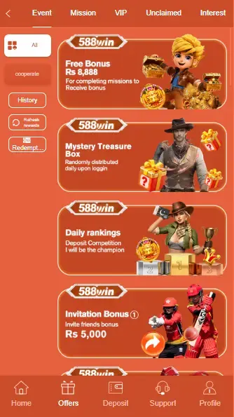 The 588Win Game comes with a simple and clean interface. All important sections such as wallet, games, deposit, and withdrawal are easily accessible. This makes it ideal for beginners who are using such apps for the first time.