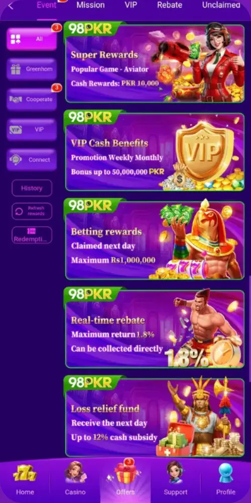 One of the main attractions of the 98PKR App is its bonus system.