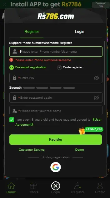 Registration Process in RS786 Game